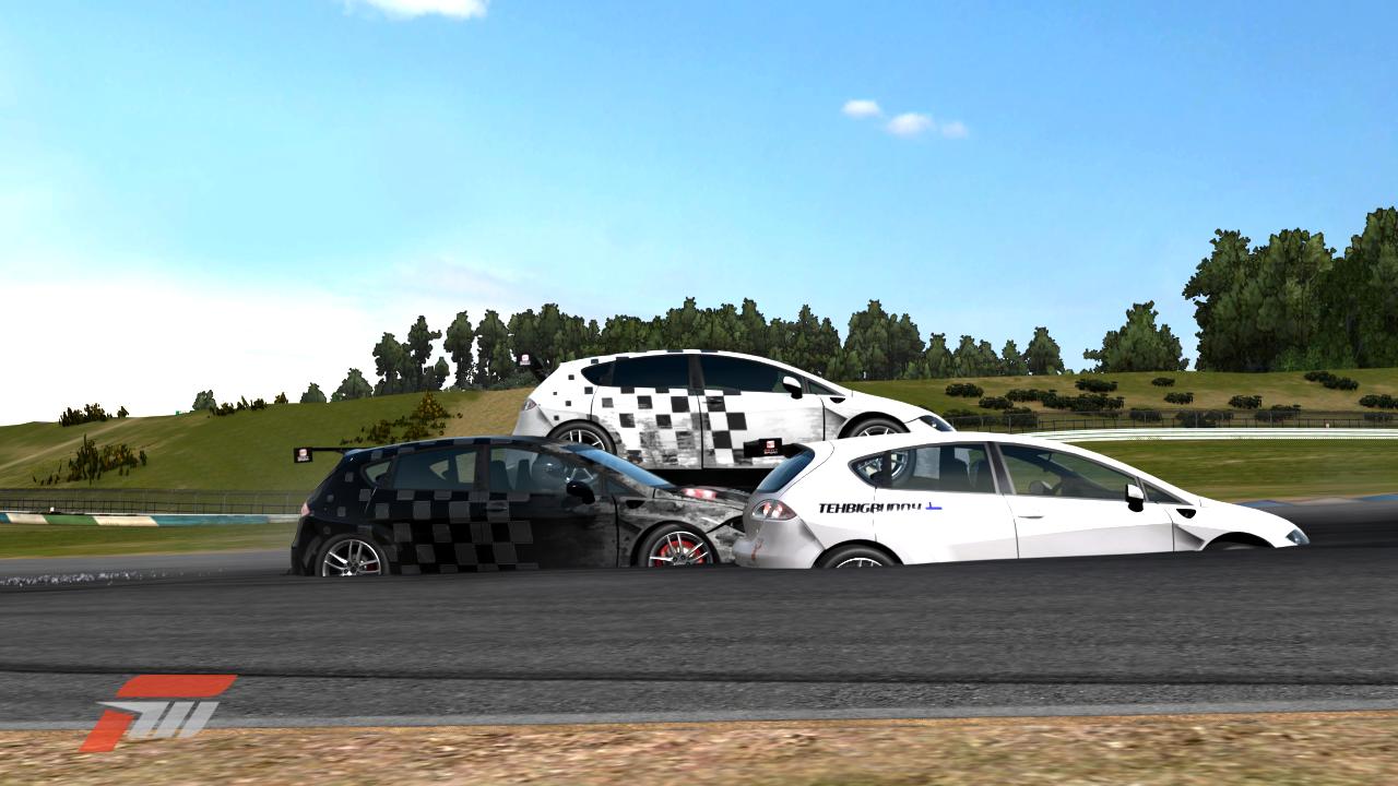 Tässä jatkoa eilisille spämmäyksille. Bunnylle kivasti kyytiä siinä. Ja AJ:lle myös. En muista kuka tuli päälle, mutta kovaa se tuli :) AJ:n kuski sai renkaan kabiinin puolelle.
