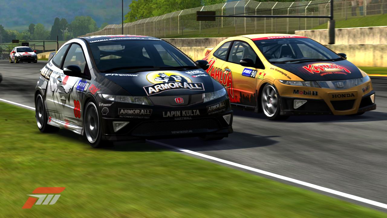 warcrylla on munaa tehdä ohitus silleen, että toiset renkaat on nurmikolla. Kuva viimeiseltä kierrokselta ja minä sekä hookkis ollaan juuri tultu varikolta ulos.