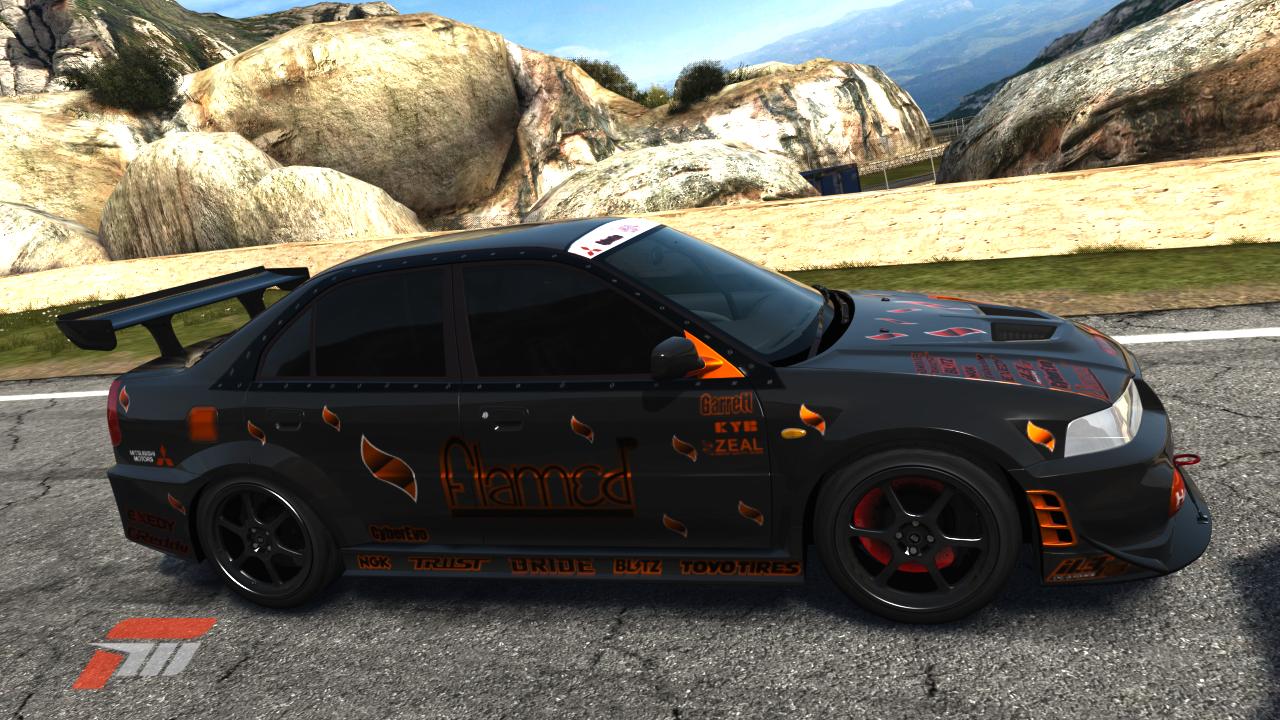 Olen sitä yrittänyt kuvien kautta tuoda esille (siinä kuitenkaan onnistumatta), että noi kaikki logot (Garrettia, KYB:iä ja Zealia lukuunottamatta) on metallicilla rajattu samoin kuin Flamed logo ja liekkien sisusta sekä muutamat muut pienemmät yksityiskohdat, eli auto tosiaan "herää henkiin" ihan eri tavalla liikkeessä, kuin näissä mun surkeissa photoiluissa.. ;)