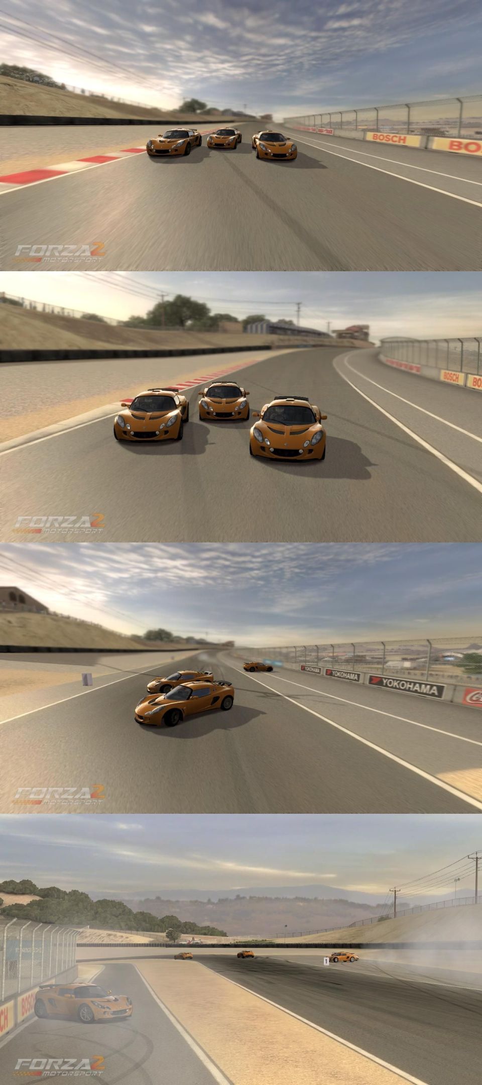 Hetki ennen Laguna Secan ensimmäistä mutkaa amis90, ariko ja hookkis112 vierekkäin, eihän siitä voi tulla kuin romua ;D. Teemu92 ja Juan Protector poistuvat paikalta kuin mitään ei olisi tapahtunut.