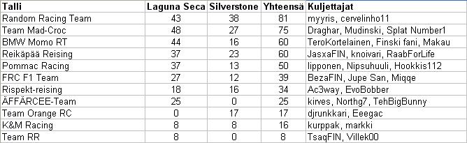 Tallipisteet toisen Silverstone Internationalin jälkeen.