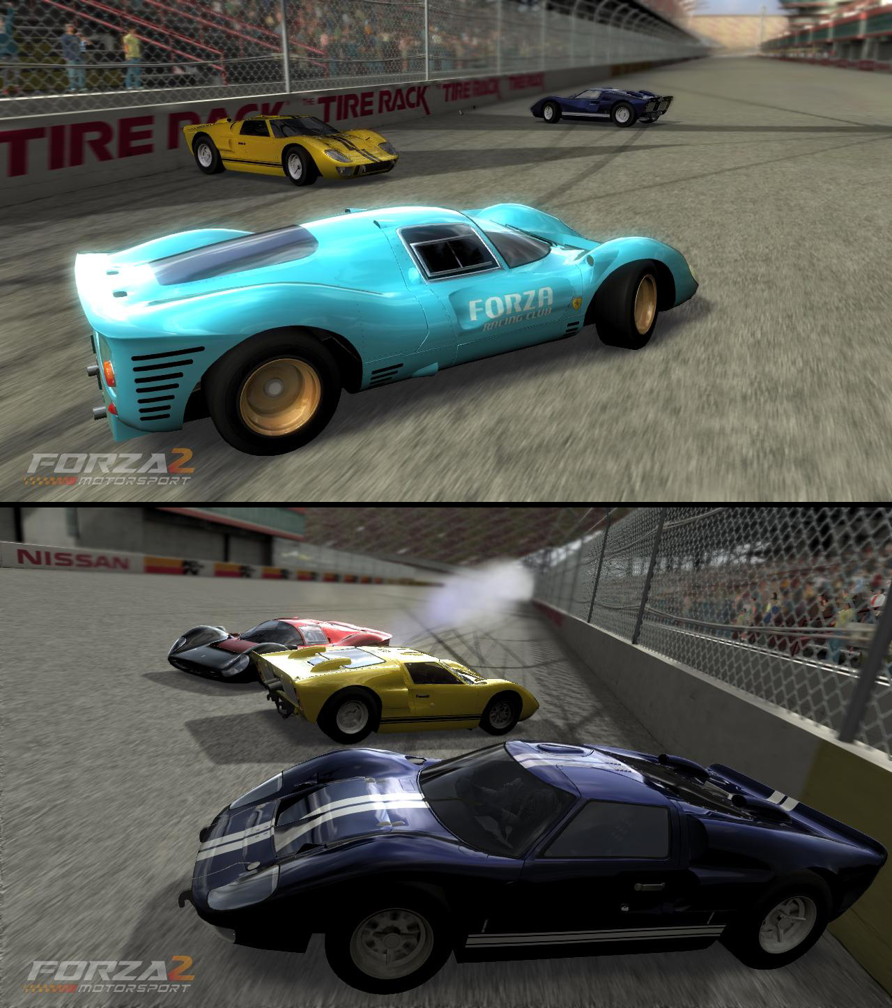 Nissan Speedway. Fordit tanssii ja Ferrarit vetää läheltä.