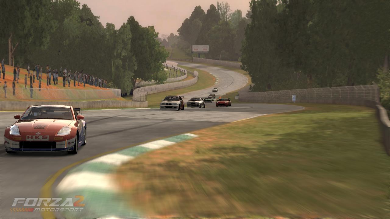 Haa, sehän on kaiketi meikäläinen Raabin takana. Tää on se ehkäpä suurimman Forza-ketutuksen aiheuttanut kisa, kun kerrankin olisi ollut auto kilpailukykyinen. Sitten tuli joku lagibugi lähtösuoralla ja Bemmin käyttösavut pääsi karkuun...