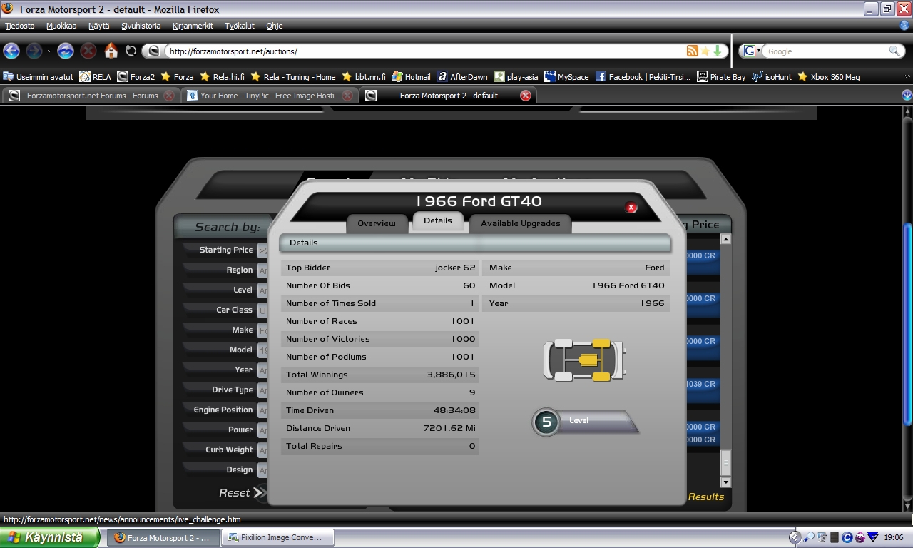 toi on pari päivää vanha kuva. mut noita "voitto-autojahan" on tuolla joka päivä. esim ferrari R1:stä saatetaan maksaa älyttömiä summia jos sillä on joku jaksanut jauhaa esim 500 voittoa lyhyimmällä TTlä :/