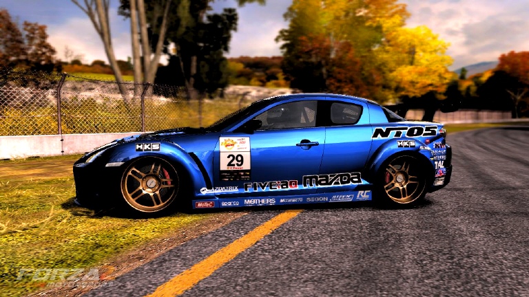 Juu, pistän kuvan alkuperäsestä kun ehdin. Ajaa siis superlap battle ja Formula D sarjassa tällä kaudella. Ja designi on tosiaan vain noita logoja siellä sun täällä, ei välttämättä kovin esteettinen :D