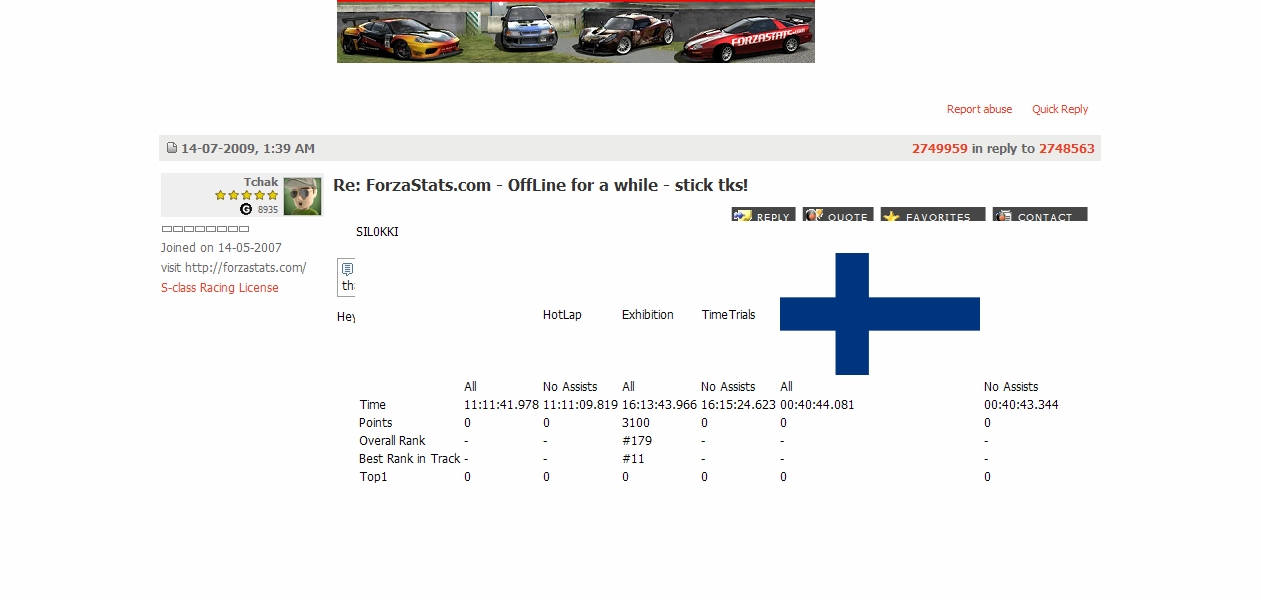 forzastatsit toimii nyt.. http://forzastats.no-ip.org:8080/forza/